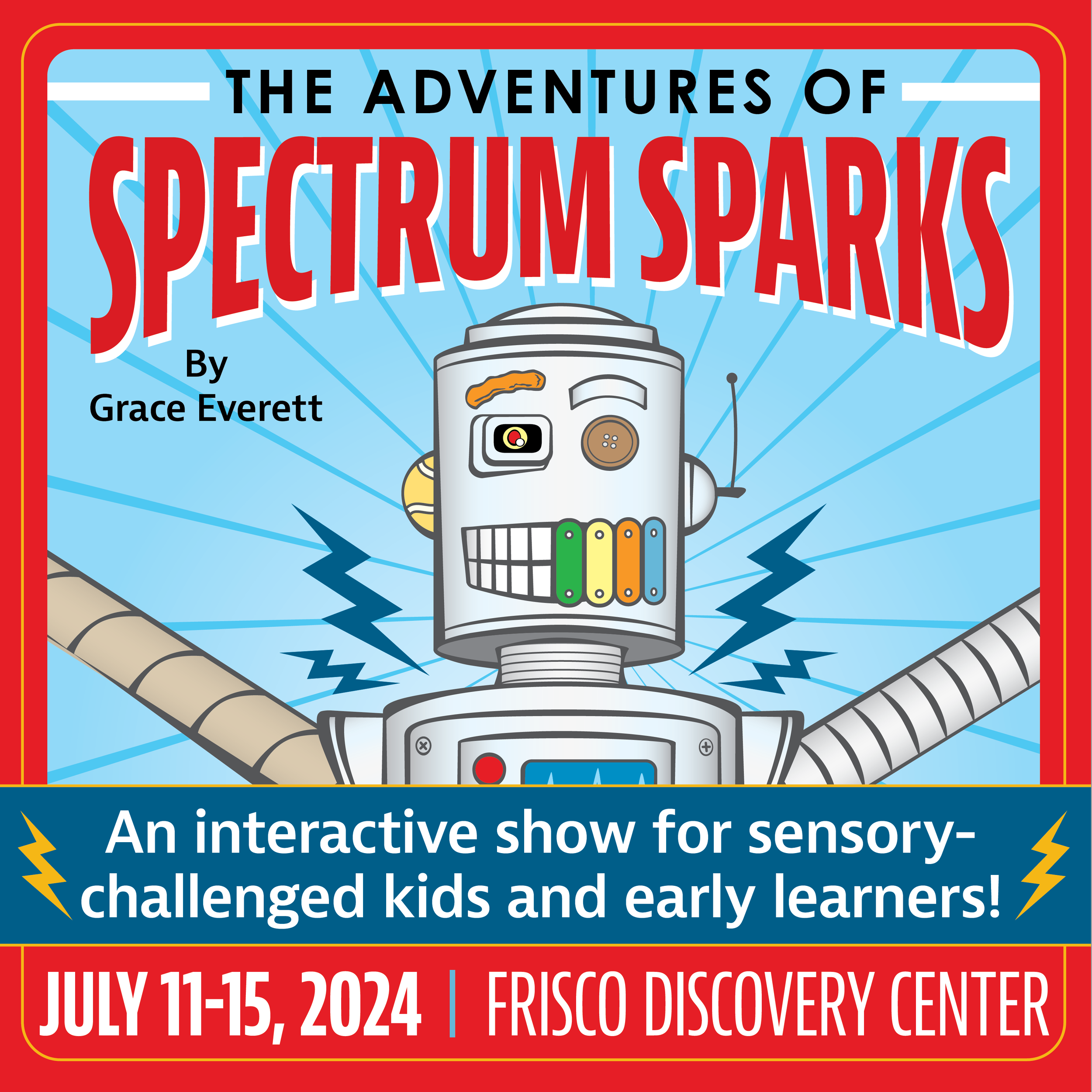 The Adventures of Spectrum Sparks is around 45 min to 60 min performance time and will have 7 performances from July 11-15 at the Frisco Discovery Black Box. We may add some additional dates to “tour” locally during the summer (Allen/Fairview, Richardson, Grapevine, etc.) and we will try to communicate those dates to the cast by May 1.